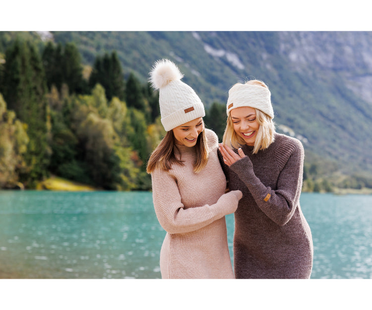 Våre luer og pannebånd i Rest kolleksjonen er perfekt for kalde vinterdager. En lue med dusk gir et lekent preg, mens pannebåndet holder ørene varme. Disse strikkeluene og pannebåndene er laget med ull på utsiden og myk fleece på innsiden. Plaggene klør ikke, noe som gjør dem behagelige å ha på.
